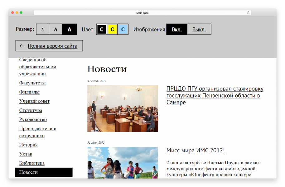 Версия для лиц с ограниченными физическими возможностями создана в соответствии с ГОСТ Р 52872-2012 и WCAG2.0.